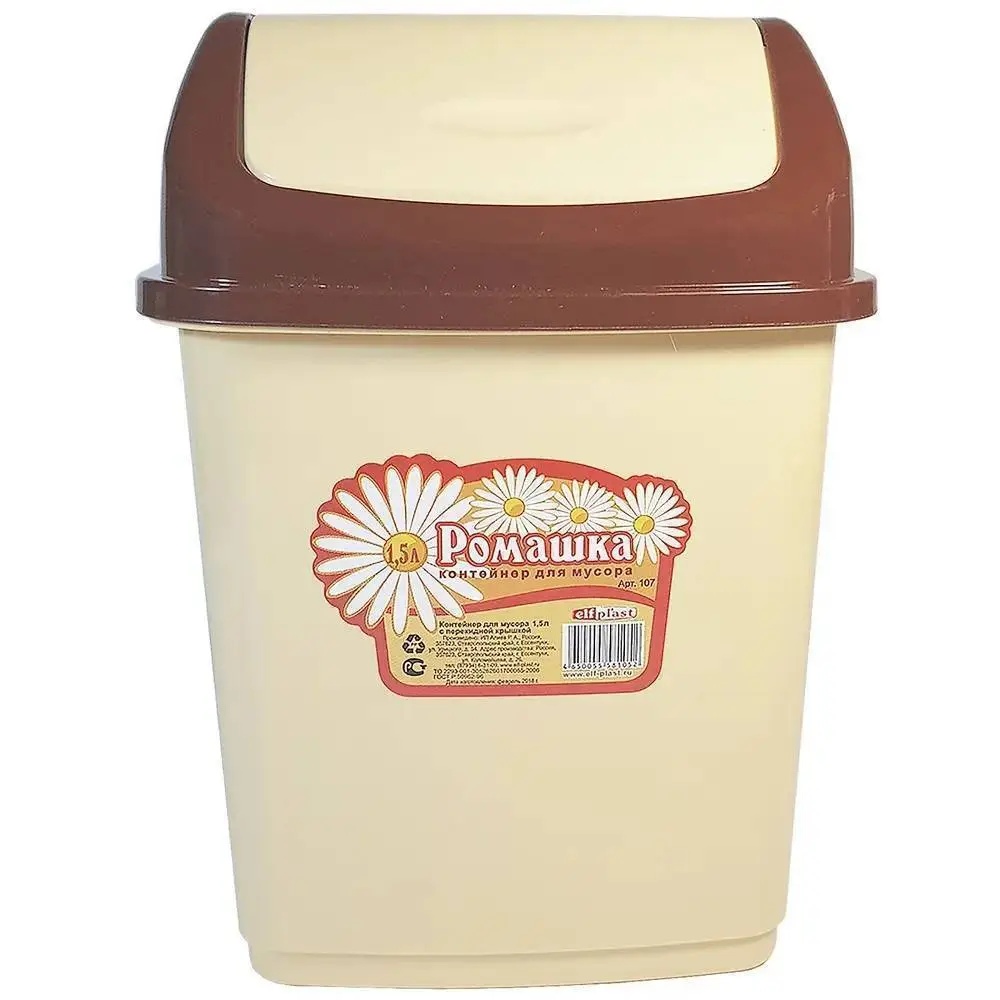 Контейнер мусорный Ромашка 1,5л плавающая крышка бежевый Эльф