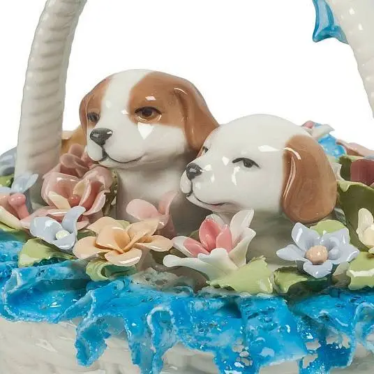 Фигурка ''Щенки в цветочной корзине'' Pavone фарфор