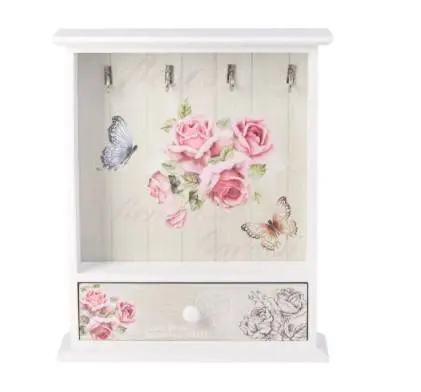 Ключница, 26,5x7x30см, цветы, полуоткрытая, с ящиком, белая
