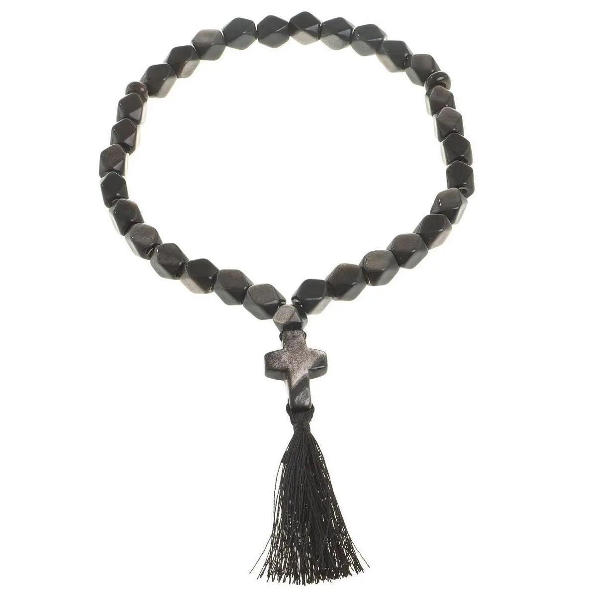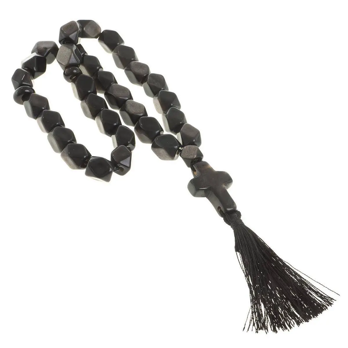 Четки камень с крестом обсидиан с иризацией 33 бусины грань