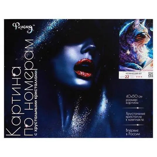 Картина по номерам 40*50см 22цв холст крист хруст Косм кот ФЛЮИД
