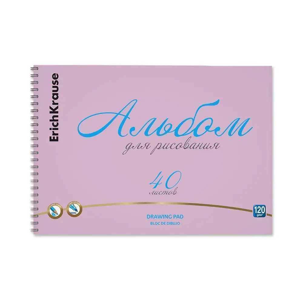Альбом д/рис А4 40л 120г гребень пл обложка розовый ЕК