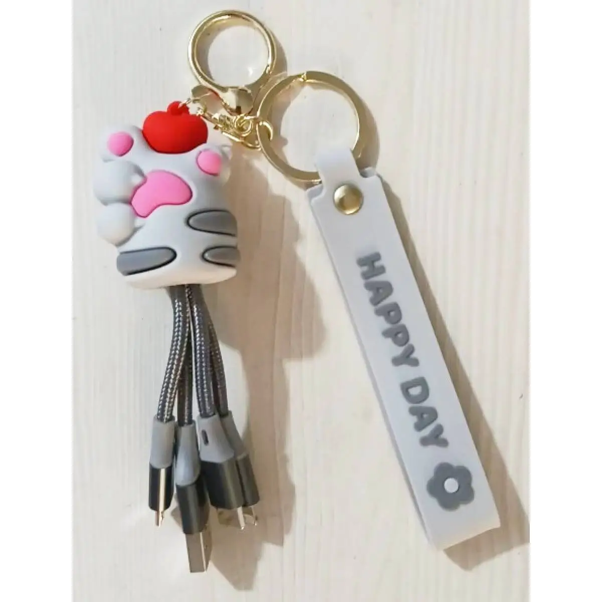 Брелок+ЮСБ кабель 16,5см "Лапка" из резины серый КОКОС