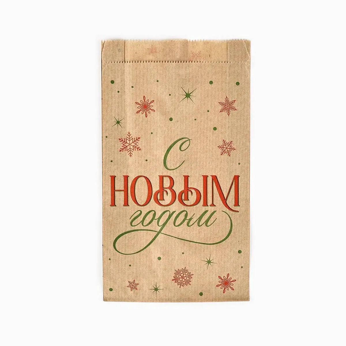 Пакет бумажный крафт, V-образное дно «С Новым годом», 20 х 11 х