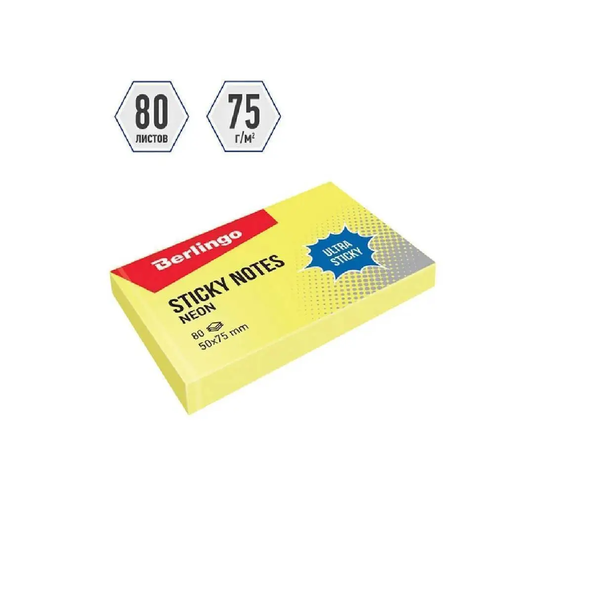 Бумага с клеевым краем Berlingo 50х75мм 80л желтый неон
