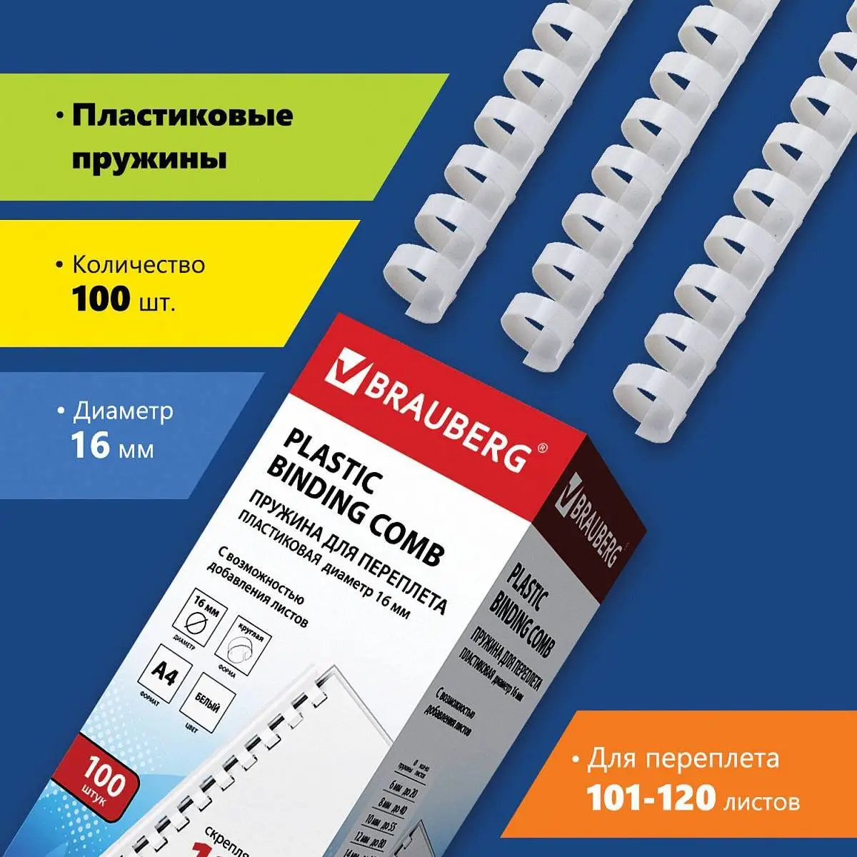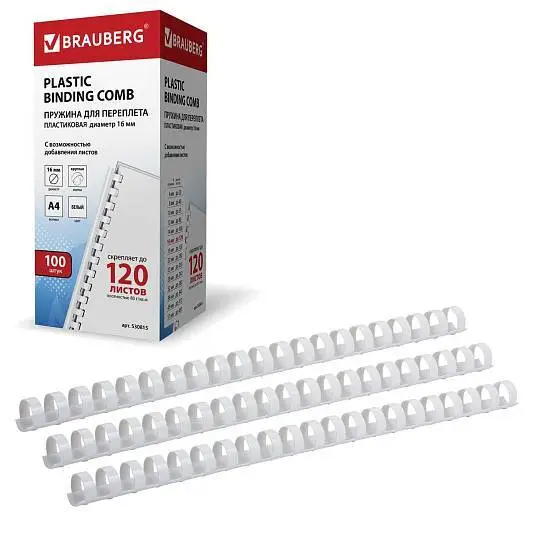 Пружины для переплета "Brauberg" 100шт, 16 мм, белые