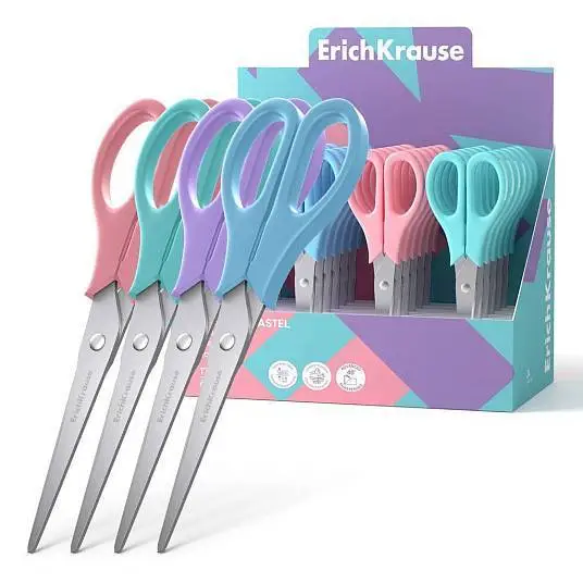 Ножницы ErichKrause "Пастель", 17 см, ассорти