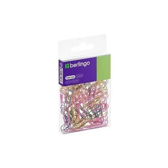 Скрепки "Berlingo" 28мм, 100шт., розовый+золотой