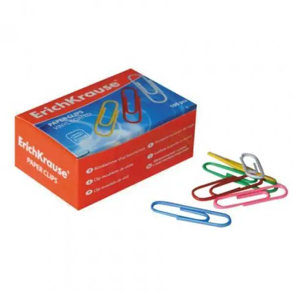 Скрепки ErichKrause 33мм, 100шт, цветные