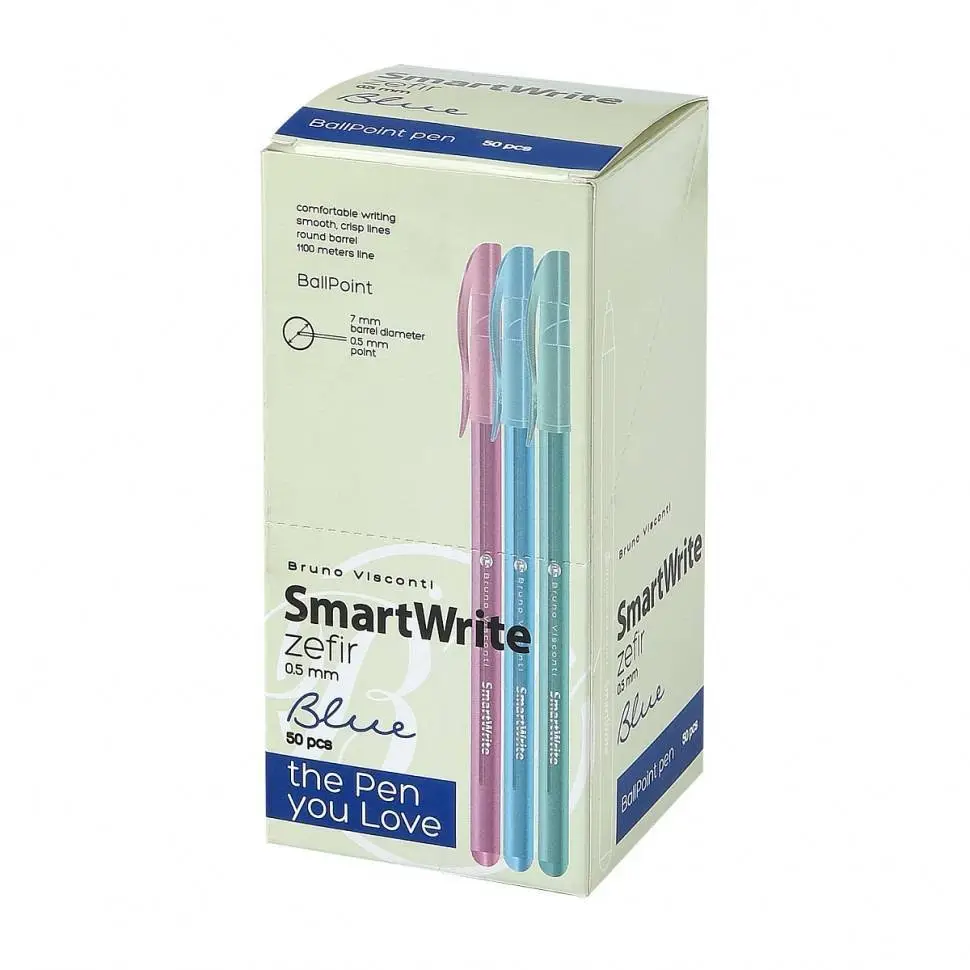 Ручка шариковая BV "SmartWrite Zefir" 0.5 мм, синяя, ассорти