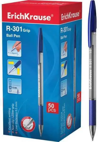 Ручка шариковая R-301 Классика с резиновым хватом, 1мм, синяя