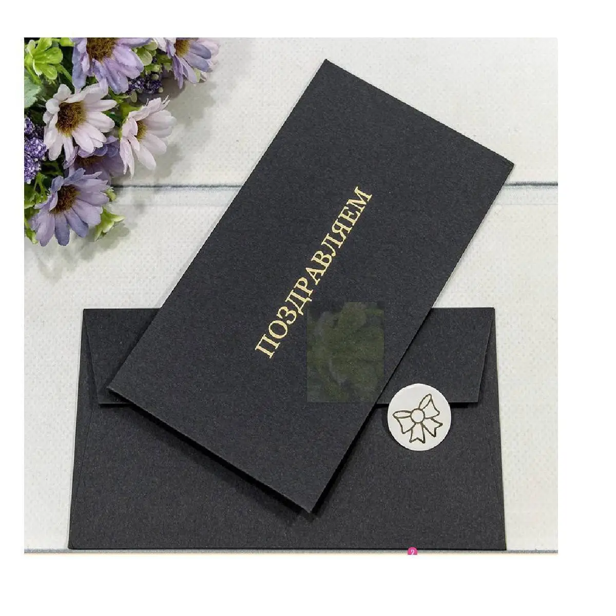 Конверт подарочный "Поздравляем" черный 16,9*9,4см 260 г/м