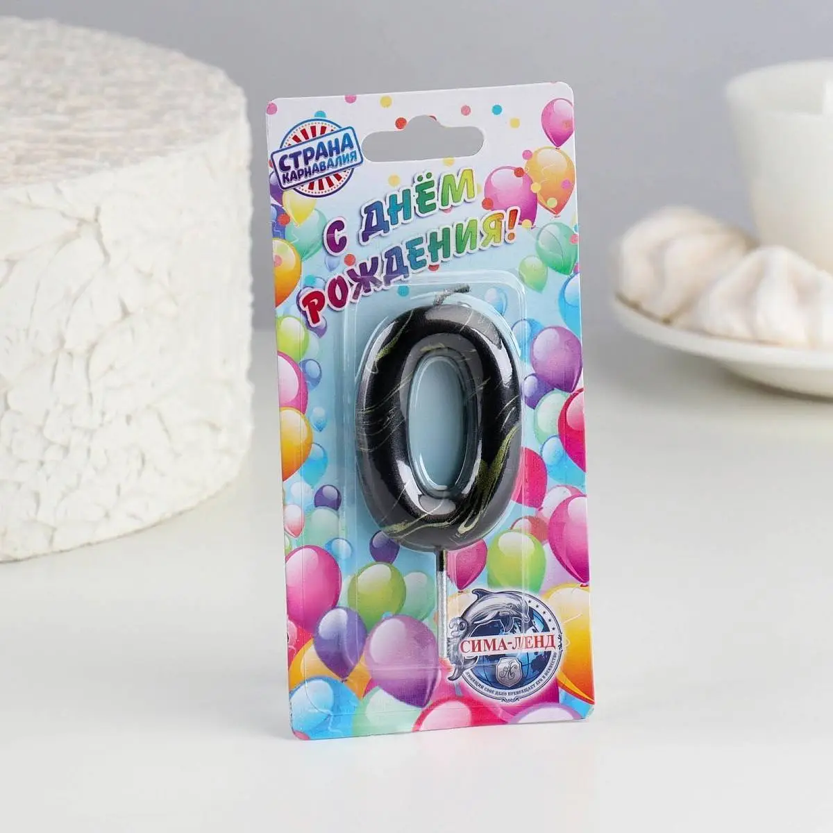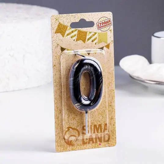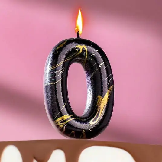 Свеча- цифра "0" Черный мрамор" 5,5 см