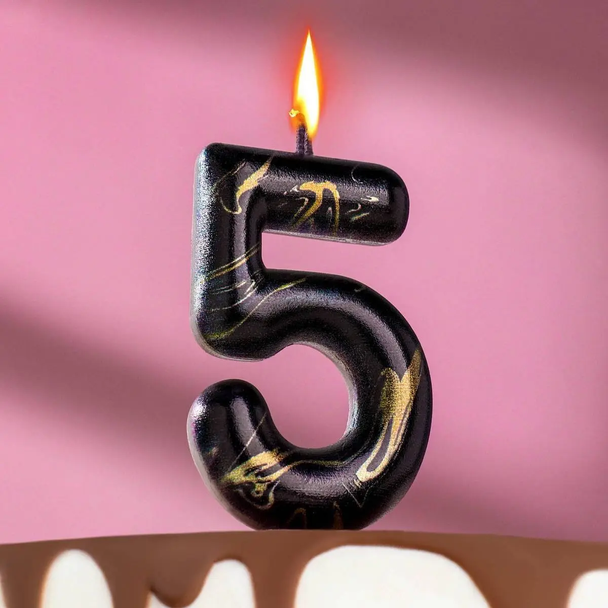 Свеча- цифра "5" Черный мрамор 5,5 см