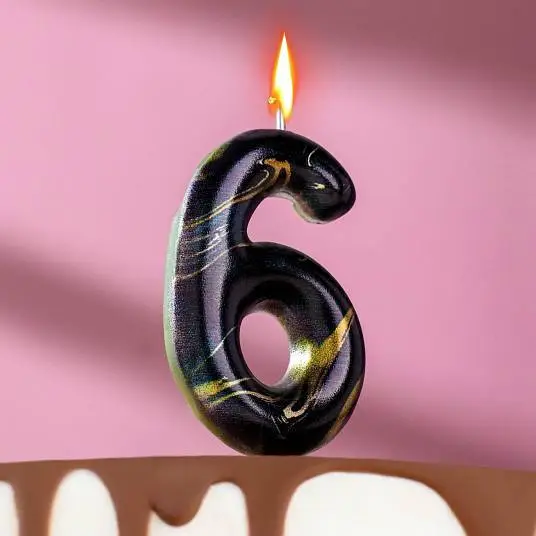 Свеча- цифра "6" "Черный мрамор" 5,5 см