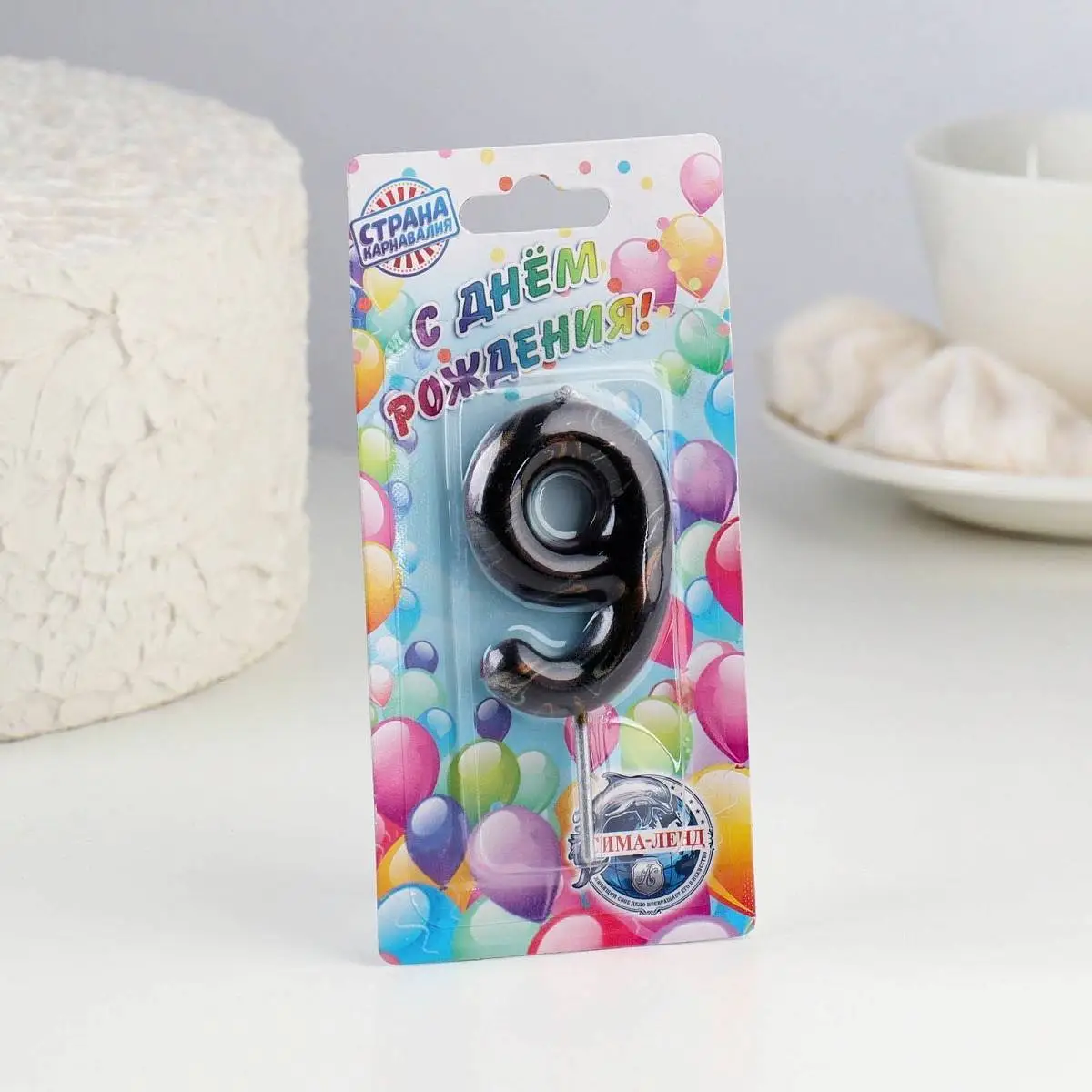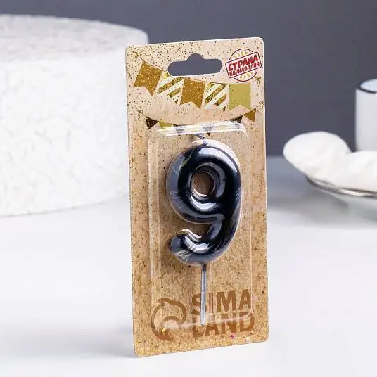 Свеча- цифра "9" Черный мрамор" 5,5 см