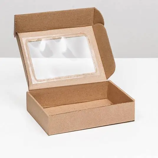 Коробка самосборная, бурая с окном, 21 х 15 х 5 см