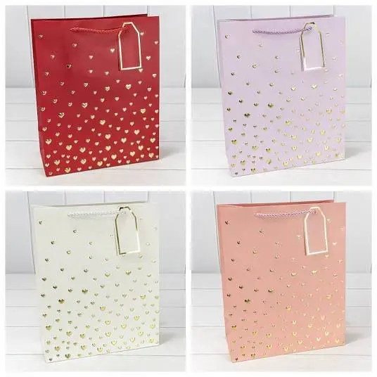 Сумка подарочная "Сердечки" 26*32*12см тиснение