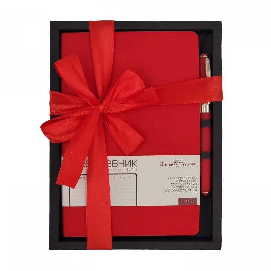 Набор подарочный А5 "MEGAPOLIS FLEX" (красный ежедн.+ручка)