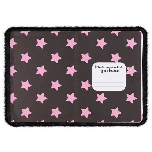 Книжка записная А5 "Котик" мех 7бц черный