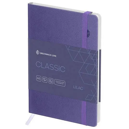 Записная книжка А6 80л кл "Classic. Lilac", с резинкой, кожзам