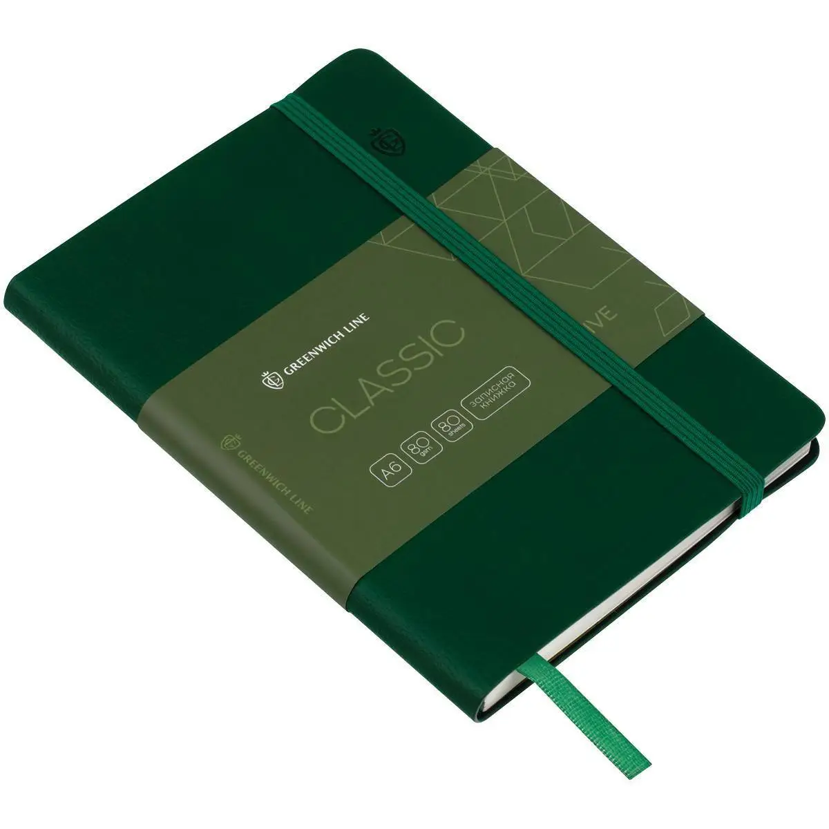 Записная книжка А6 80л кл "Classic. Olive", с резинкой, кожзам