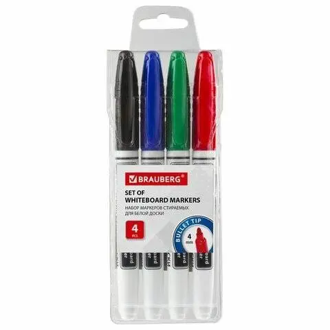 Набор маркеров для белой доски Brauberg, 4мм, 4цв.