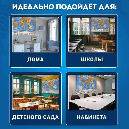 Карта мира политическая 101х70 см, 1:32М, с ламинацией, интеракт