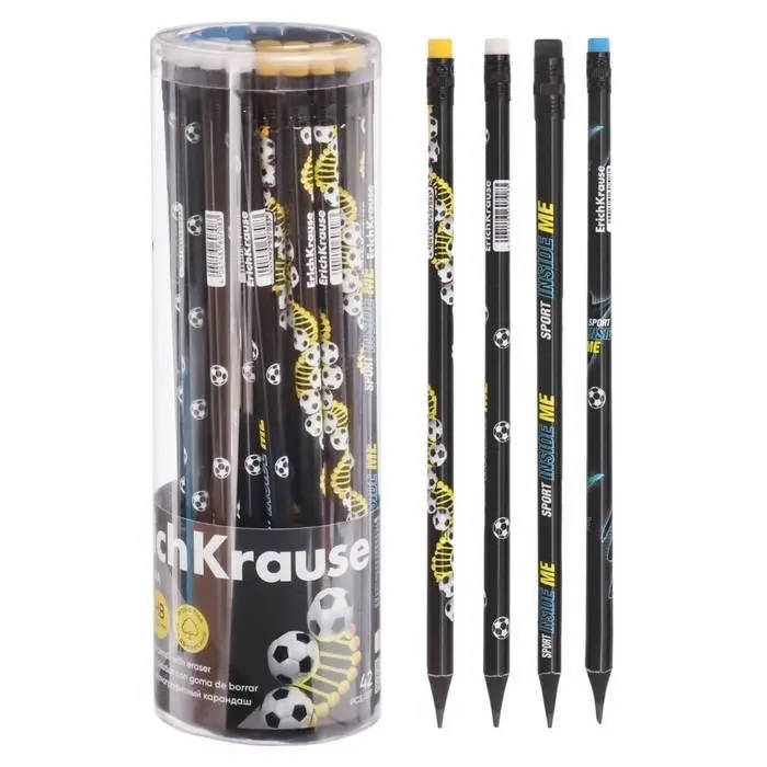 Карандаш чернографитный EK ДНК спорта,ТМ, круглый, с ластиком