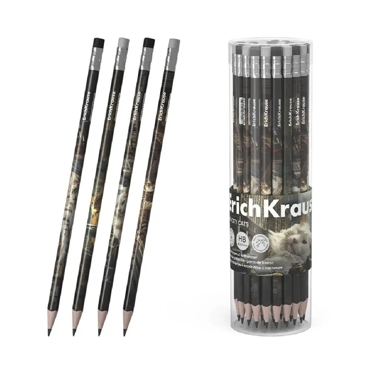 Карандаш чернографитный EK Коты большого города ТМ, трехг, ластик
