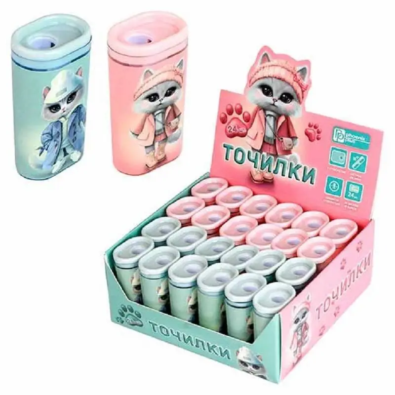 Точилка Городские кошечки ассорти 1отв 8мм контейнер