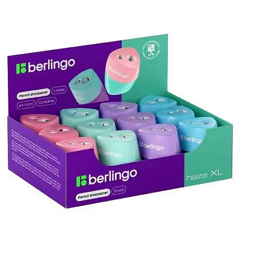 Точилка пластиковая Berlingo "Haze XL", 2 отв., контейнер, ассор