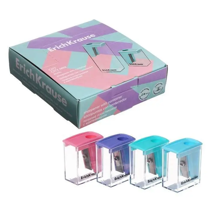 Точилка пластиковая EK Сити Мини, Пастель, с контейнером, ассорти