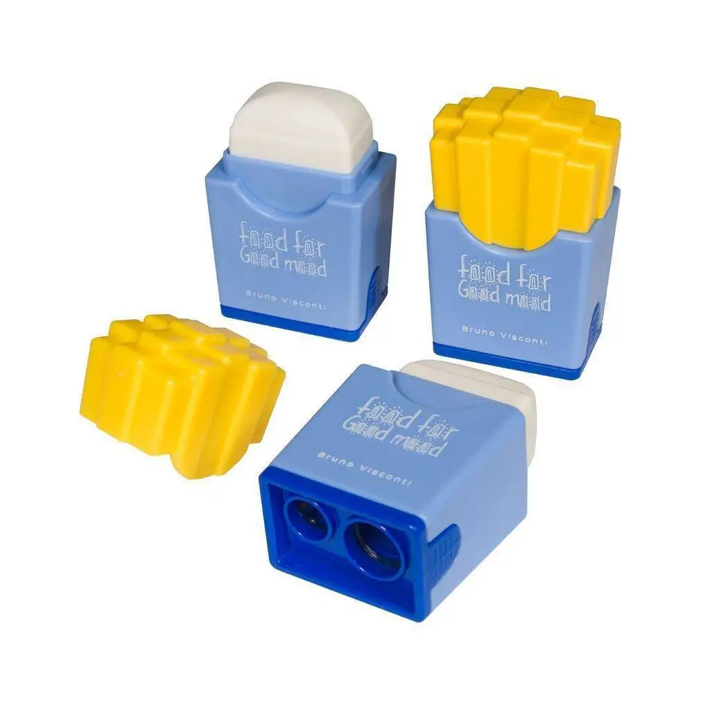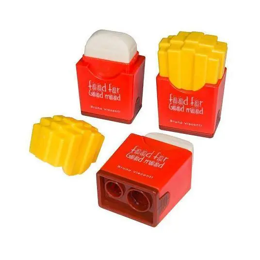 Точилка с ластиком "JUNIOR GRAPHIX. FAST FOOD" 2отв, микс