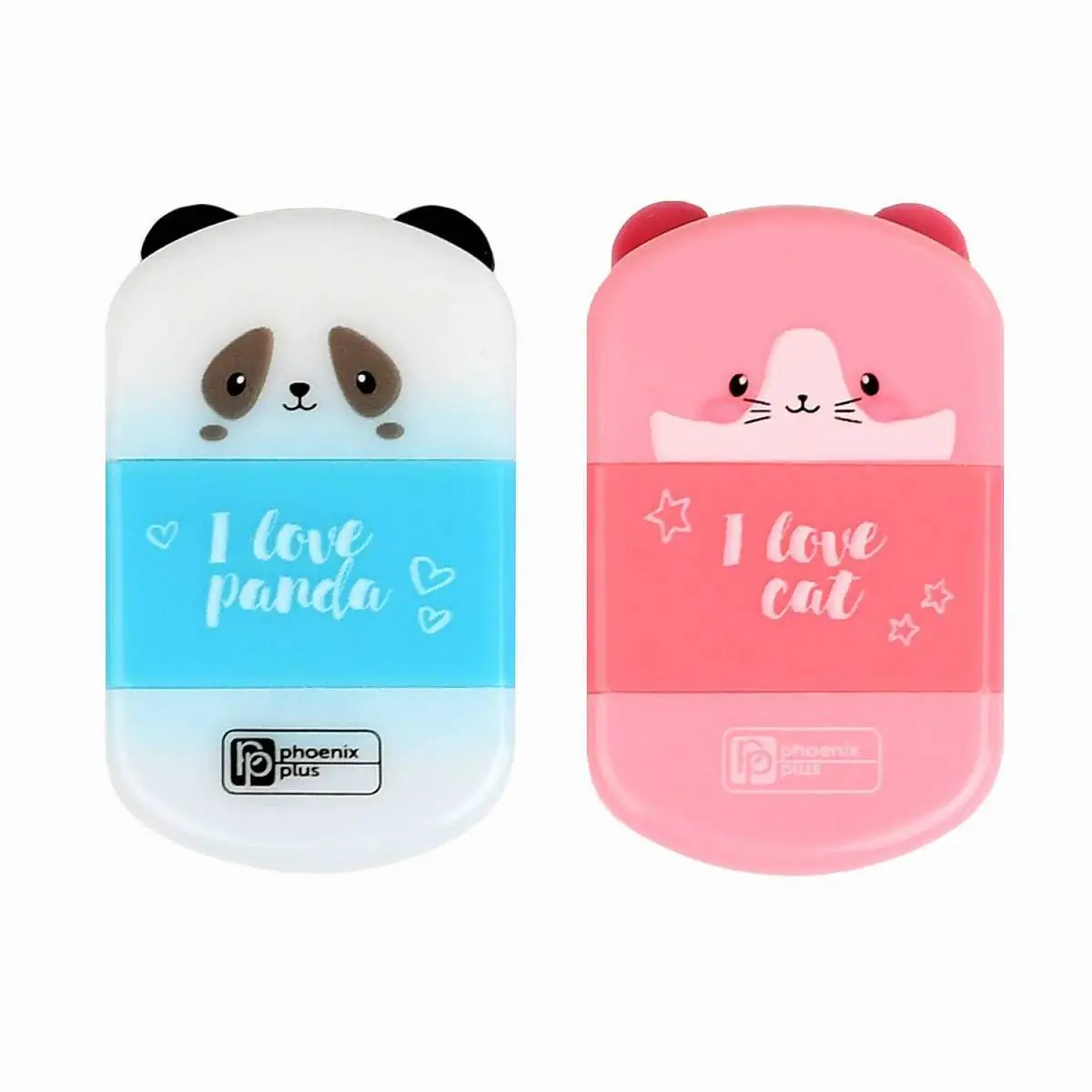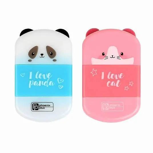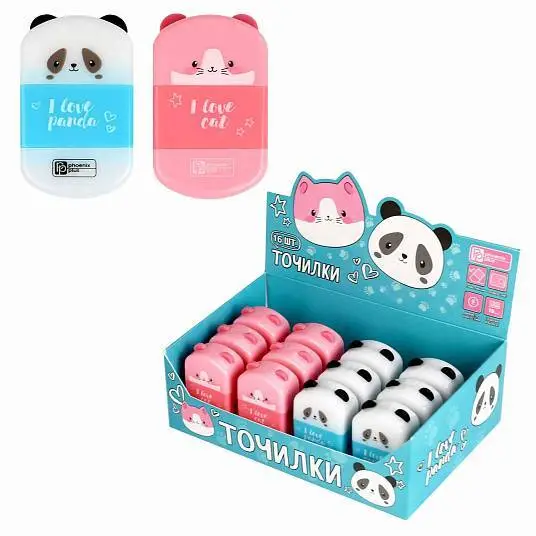 Точилка с ластиком "КОТ И ПАНДА" 1отв, с контейнером, ассорти
