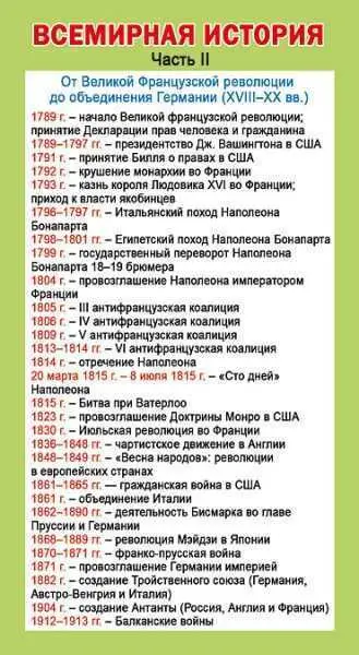 Карточка-шпаргалка "Важнейшие даты всемирной истории. Часть 2"