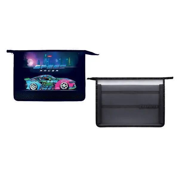 Папка д/труда А4 пластик 2отд молния City racing