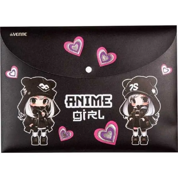 Папка на кнопке "deVENTE. Anime Girl" A4, тиснение сереб.фольгой