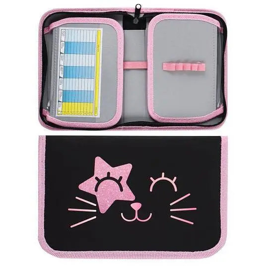 Пенал школьный "Котик" 20х14см, 1отд, 2 откид.планки, soft touch