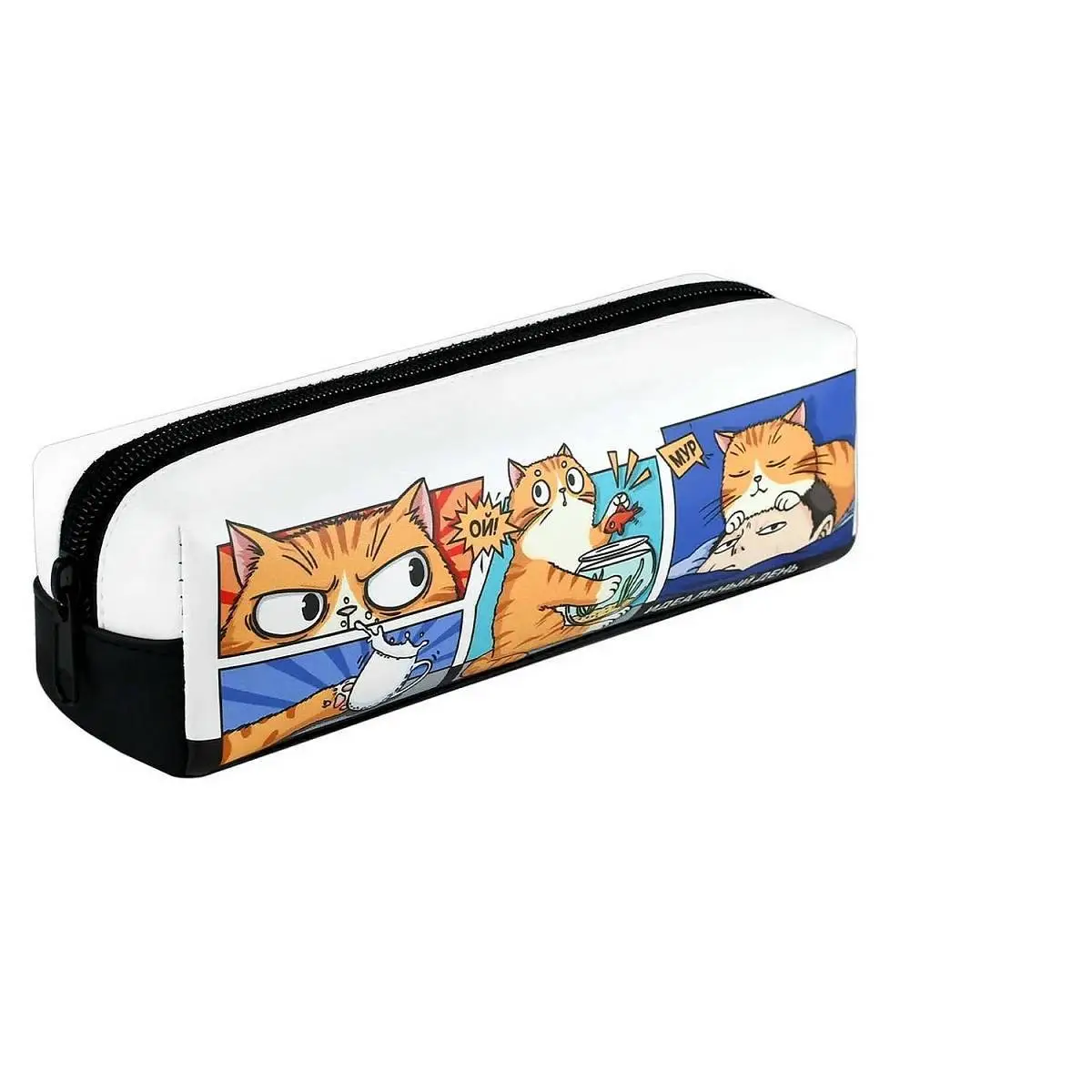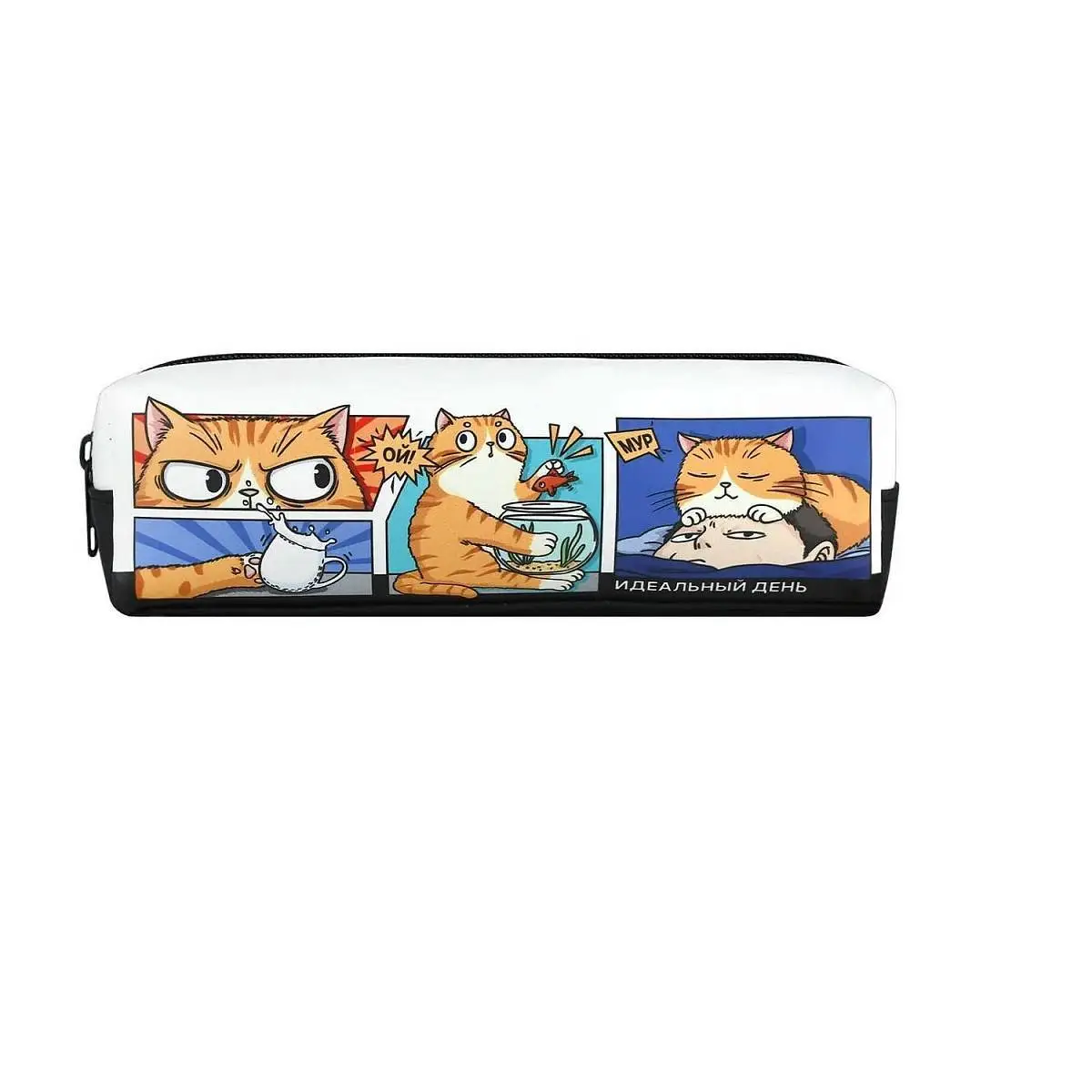 Пенал школьный "День Кота" молния 19,5х5,5х6см иск /кожа