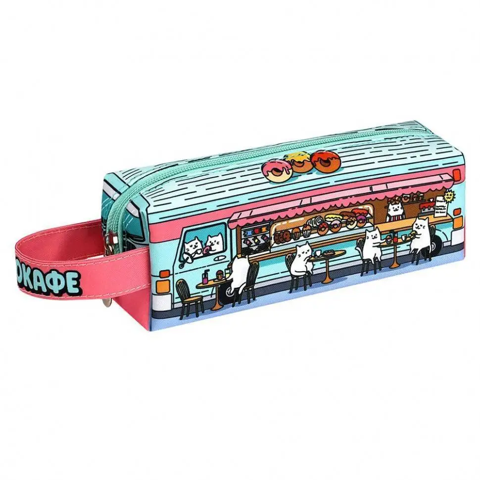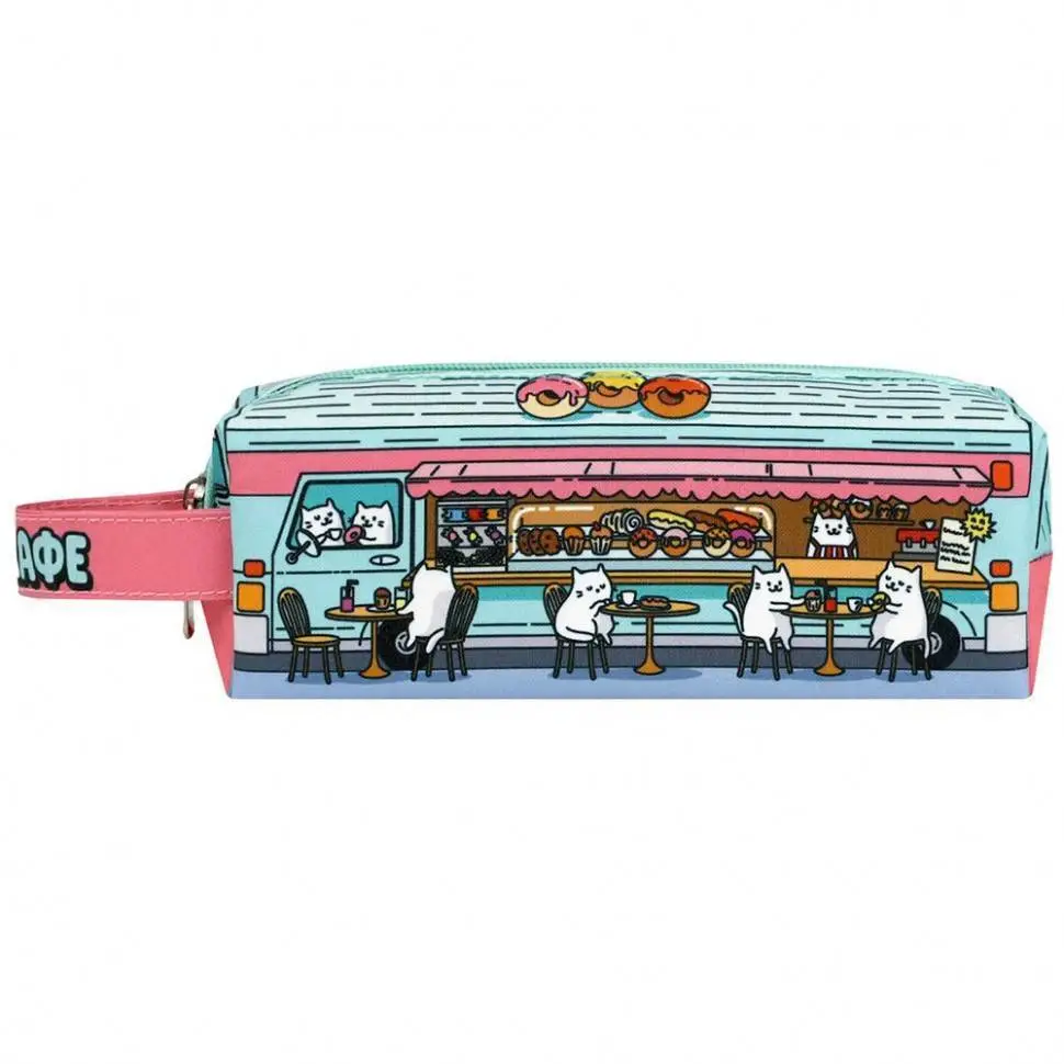 Пенал школьный "Котокафе" молния 20х7х5.5см