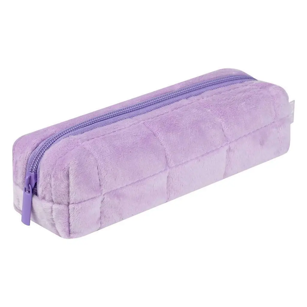 Пенал школьный "Плюш сиреневый" молния б/наполн 19.5х5.5х6.5см