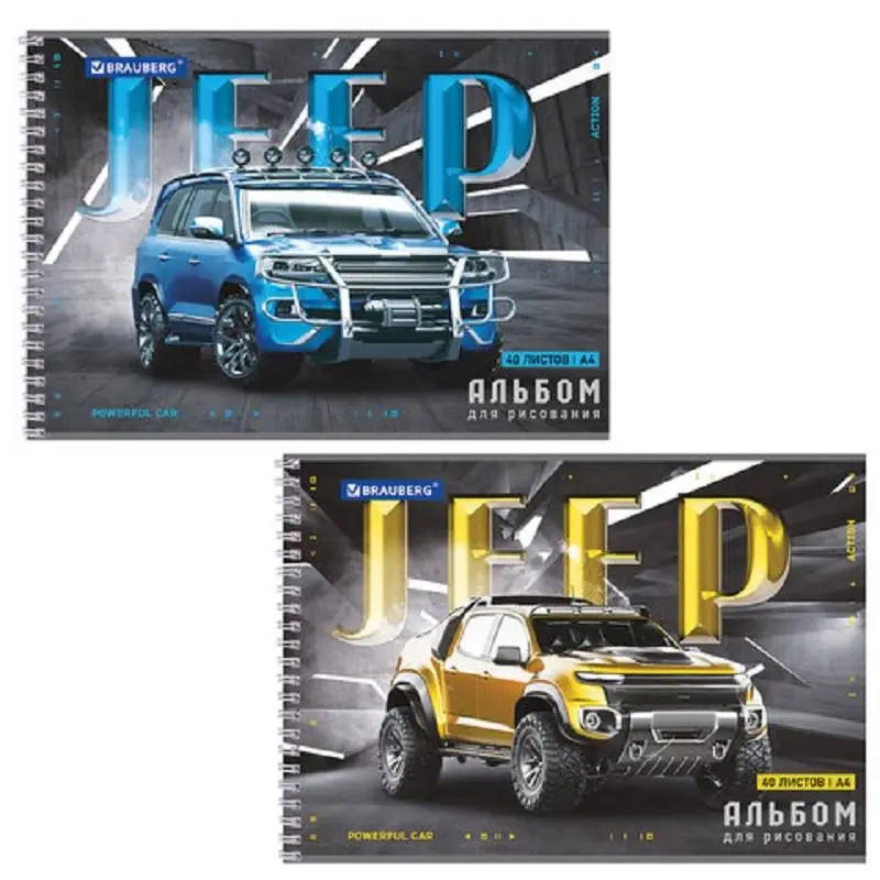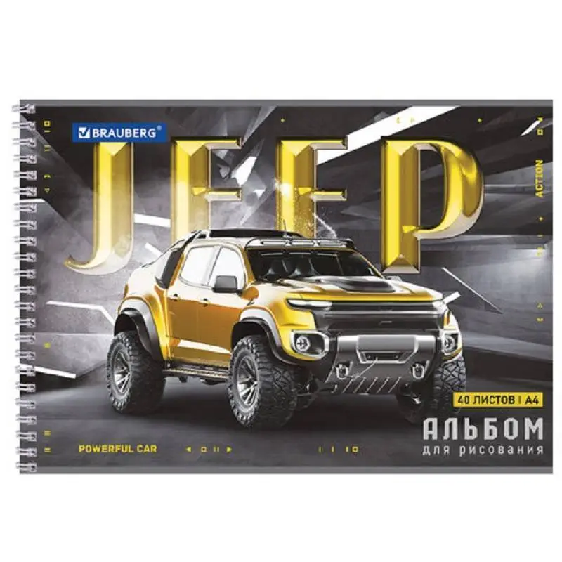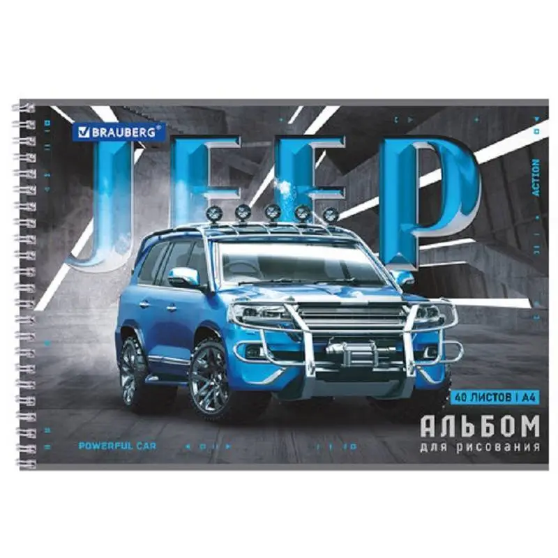 Альбом для рисования А4 40л гребень BRAUBERG Джипы