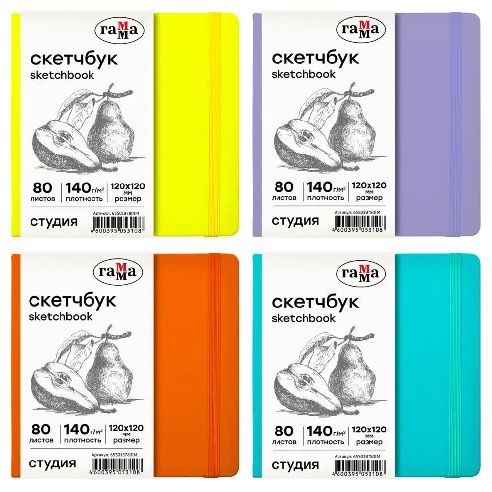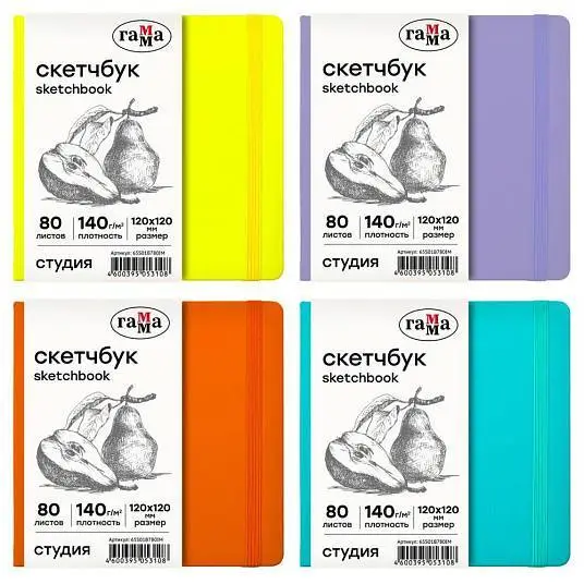 Альбом д/эскизов к 120*120мм 80л Гамма "Студия" ярк цв сл к 140г
