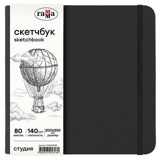 Альбом д/эскизов к 200*200мм 80л Гамма "Студия" черный сл к 140г